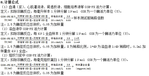 本试剂盒可测定动物血清、血浆、组织以及全血、血细胞中的GSH-PX的活力。